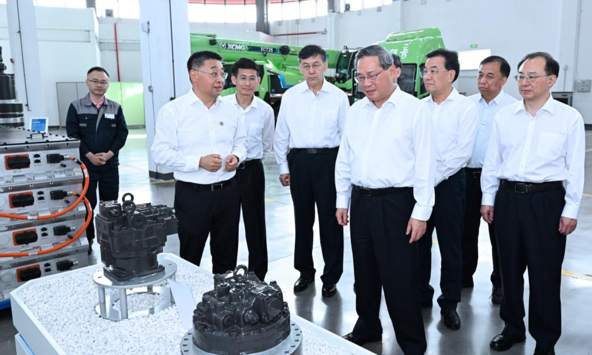 While inspecting a local machinery company, Li called for actively applying technologies such as artificial intelligence and clean energy to promote the upgrade of the construction machinery industry in line with the global trend.
