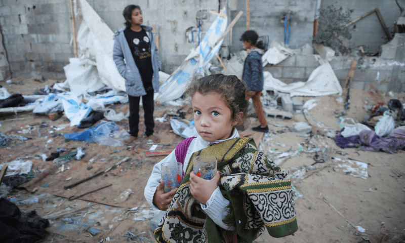 Dujarric urged Israel to meet the “essential needs” of civilians in the north and facilitate the delivery of humanitarian aid.A Palestinian girl holds glasses in her hands as she stands amidst the damage at a tent camp sheltering displaced people, following an Israeli strike, in Al-Mawasi area in Khan Younis, southern Gaza Strip, on Dec 18, 2024. — Reuters