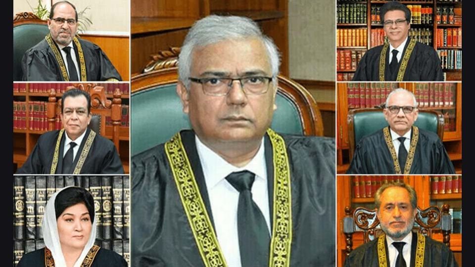 The bench — led by Justice Aminuddin Khan and also including Justices Jamal Khan Mandokhail, Naeem Akhtar Afghan, Muhammad Ali Mazhar, Hassan Azhar Rizvi, Musarrat Hilali, and Shahid Bilal Hassan — had been reviewing whether the trial of civilians in military courts was Constitutional or not.